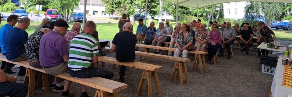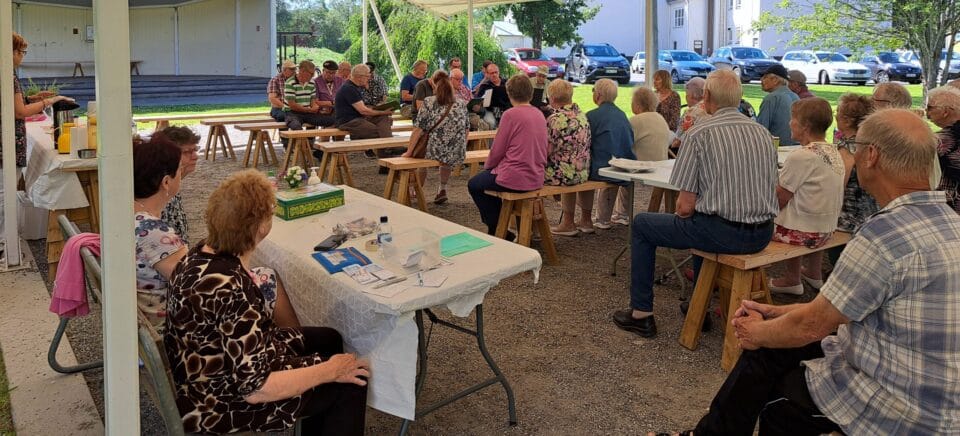 Eläkeliiton Teuvan yhdistys piti Sunnuntaikahvilaa vanhan kunnantalon puistossa heinäkuisena sunnuntaina 2025. Nautittiin hyvästä ohjelmasta, maukkaista kahveista ja kauniista kesäsäästä.